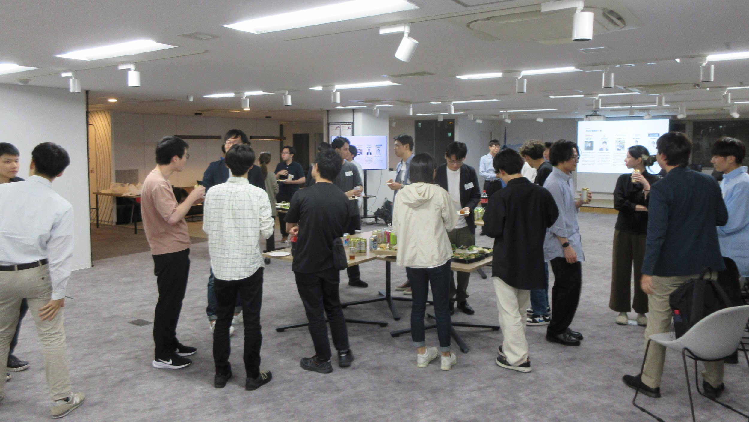 2024年5月24日開催 Deeptech Career #4 の懇親会の様子(中央左、3人の学生と話しているのが塚本氏)